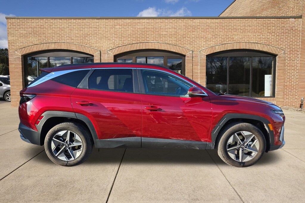 Make your life easier in our One Owner, Accident Free 2025 Hyundai Tucson SEL Convenience AWD, which looks excellent in Ultimate Red! Powered by a 2.5 Liter 4 Cylinder delivering 187hp to an 8 Speed SHIFTRONIC Automatic transmission with multiple drive modes to enhance capability. You can also see nearly 30mpg on the highway in this All Wheel Drive SUV, and it's carefully tuned for adventure-ready handling. Our Tucson turns heads, too, with LED lighting, a hands-free liftgate, a rear spoiler, alloy wheels, a sunroof, and heated power mirrors with built-in turn signals.