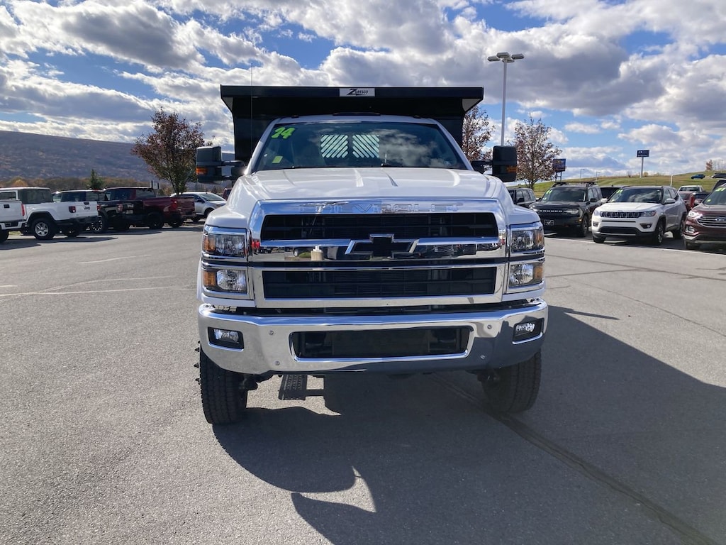 VOCATIONAL SPECIFIC HEAVY SUSPENSION PACKAGE Allows the selection of 7,000 lb., 8,000 lb., front axles and/or 15,500 lb. rear spring suspension on trucks that will be upfitted with the following vocational bodies: Utility/Service Bodies, Aerial Lift/Bucket bodies, Front Plow/Rear Spreader Applications, and Landscape Dump Bodies. , WHEELBASE, 165" (419.1 CM), 84" CA (STD), TIRES, REAR 225/70R19.5G TRACTION BLACKWALL PIRELLI Max Axle Load: 15,000 lb., TIRES, FRONT 225/70R19.5G TRACTION BLACKWALL PIRELLI Max Axle Load: 7,940 lb., TIRE VALVE CAP, HALTEC FLOW-THRU, SPARE TIRE DELETE (STD), SKID PLATE, STEEL, FRAME-MOUNTED, PROTECTS THE TRANSFER CASE FROM THE GROUND, SHOCK ABSORBERS, REAR, SEATS, FRONT 40/20/40 SPLIT-BENCH, 3-PASSENGER driver and front passenger recline with outboard head restraints and center fold-down armrest with storage. Vinyl has fixed lumbar and cloth has manually adjustable driver lumbar. (STD), RUGGED DUTY SERVICE TRANSMISSION, AUTOMATIC CLOSE-RATIO 6 SPD WITH DOUBLE OVERDRIVE, ALLISON, A2750RDS ratios: 3.10 1ST, 1.80 2ND, 1.40 3RD, 1.00 4TH, 0.70 5TH, 0.61 6TH Rugged Duty Series, includes park pawl,.
