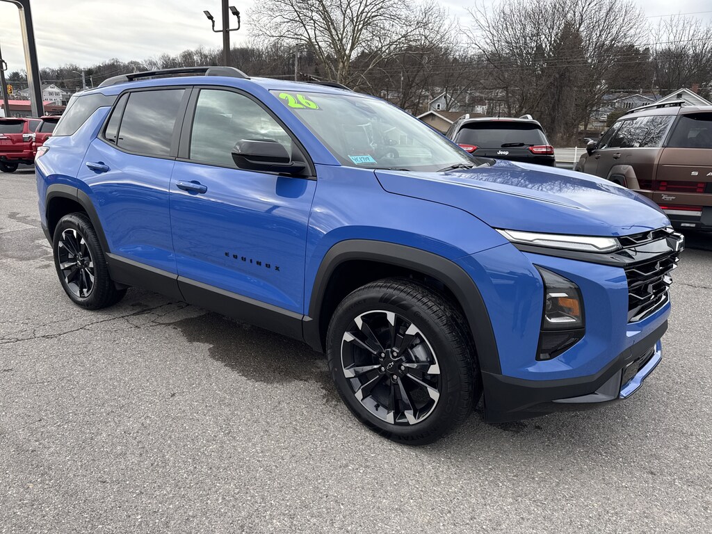 Our 2026 Chevrolet Equinox RS AWD with the Convenience III Package in Reef Blue Metallic is here to upgrade your adventures with legendary style! Powered by a TurboCharged 1.5 Liter 4 Cylinder offering 175hp paired with an 8 Speed Automatic transmission to help boost your performance. Also showing off refined road manners, this All Wheel Drive SUV sees nearly 30mpg on the highway with dynamic good looks. Our Equinox is ready to turn heads with black Bowtie emblems, LED lighting, 19-inch alloy wheels, a power liftgate, and heated power mirrors.