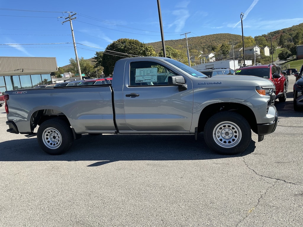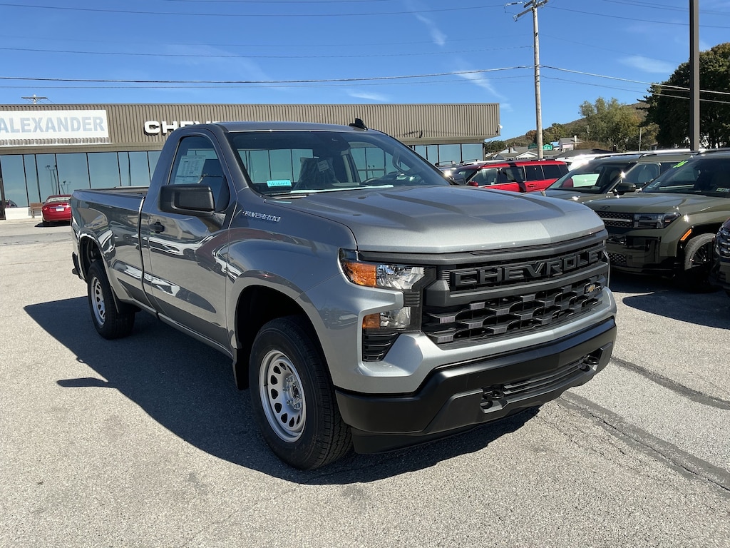 Our 2026 Chevrolet Silverado 1500 W/T Regular Cab 4X4 in Sterling Gray Metallic delivers unstoppable confidence with fleet-friendly simplicity and the muscle to handle heavy workloads with ease. Motivated by a 5.3 Liter V8 offering 355hp to a 10 Speed Automatic transmission engineered for strong towing and hauling. This Four Wheel Drive truck also has an impressively capable suspension for extra comfort on big jobs, and it sees nearly 20mpg on the highway. Our Silverado makes a powerful impression with a premium grille, LED lighting, black bumpers, matching mirror caps, a rear CornerStep, and convenient cab-mounted cargo lamps. It's a handsome exterior that helps you stand out from the crowd!