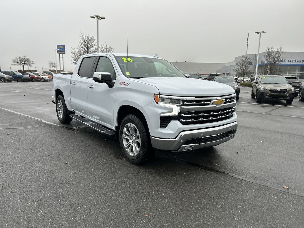 Polar White 2026 Chevrolet Silverado 1500 LTZ 4WD 10-Speed Automatic EcoTec3 5.3L V8 Passed Dealer Inspection, 10-Speed Automatic, 4WD, Black Leather. Price includes: $3250 - Chevrolet GM Financial APR & NCC Consumer Cash Program: $3250 discount and 6.39% APR for 36 months. $30.60 per $1000 financed. Available to well qualified buyers who finance through GM Financial. XGQ, NCC. Exp. 02/02/2026