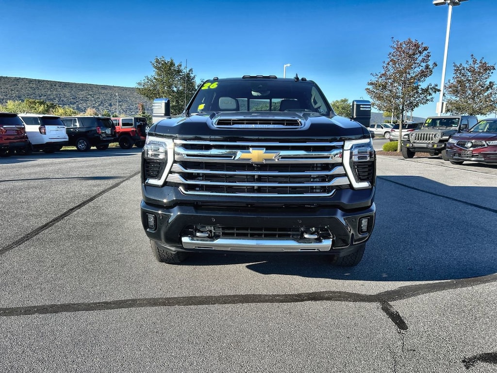 Black 2026 Chevrolet Silverado 2500HD High Country 4WD 10-Speed Automatic Duramax 6.6L V8 Turbodiesel Passed Dealer Inspection, 10-Speed Automatic, 4WD, Jet Blk/Nightshift Blu Pe Leather. Price includes: $1500 - Chevrolet GM Financial APR & NCC Consumer Cash Program: $1500 discount and 6.69% APR for 36 months. $30.74 per $1000 financed. Available to well qualified buyers who finance through GM Financial. XGQ, NCC. Exp. 12/01/2025