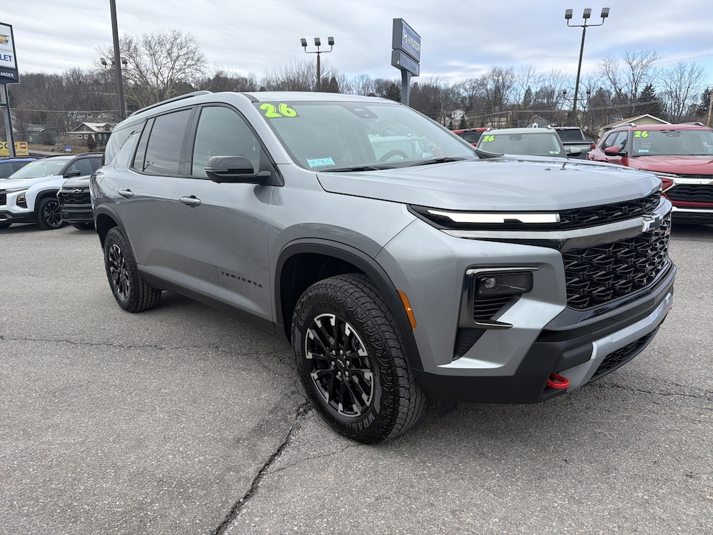 Commanding attention, our 2026 Chevrolet Traverse Z71 AWD in Sterling Gray Metallic offers a confident way forward for families who want all-weather traction and a fresh take on SUV capability. Powered by a TurboCharged 2.5 Liter 4 Cylinder offering 328hp to an 8 Speed Automatic transmission. You can push ahead off the pavement with an off-road suspension, twin-clutch AWD system, and terrain mode selector, and this All Wheel Drive SUV returns nearly 24mpg on the highway. A sporty gloss-black grille sets the tone for aggressive Traverse style with matching accents, LED lighting, bold gloss black wheels, roof rails, red tow hooks, a trailer hitch, a panoramic sunroof, and a hands-free liftgate.