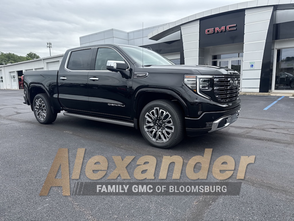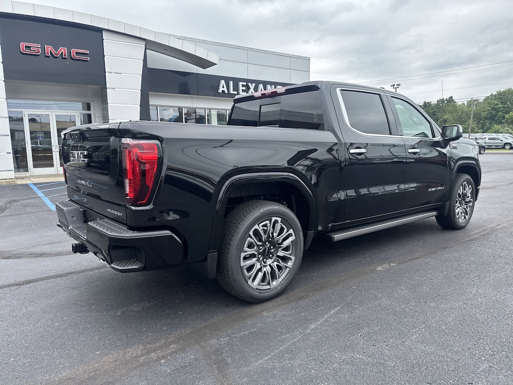 Onyx Black 2025 GMC Sierra 1500 Denali Ultimate 10-Speed Automatic, 4WD, Alpine Umber Leather. Preferred Equipment Group 5SB (120-Volt Bed Mounted Power Outlet, 120-Volt Interior Power Outlet, 2 Charge/Data USB Ports Inside Center Console, 2 Type-C Charge-Only Rear USB Ports, 2 USB Ports, Auto-Locking Rear Differential, Bed View Camera, Bose Premium Series w/12-Speaker System, Chrome Recovery Hooks, Color-Keyed Carpeting Floor Covering, Deep-Tinted Glass, Electric Rear-Window Defogger, Floor-Mounted Center Console, Front Rain-Sensing Wipers, HD Surround Vision, Heated 2nd Row Outboard Seats, Heated Driver & Front Outboard Passenger Seating, Heavy-Duty Air Filter, High Gloss Black Header w/Signature Denali Grille, Hill Descent Control, Hitch View, In-Vehicle Trailering System App, Integrated Trailer Brake Controller, Keyless Open & Start, LED Cargo Area Lighting, Multicolor 15 Diagonal Head-Up Display, MultiPro Tailgate Audio System by Kicker (LPO), OnStar Services Capable, Perimeter Lighting, Power Door Locks, Power Front Passenger Windows w/Express Up/Down, Power Front Windows w/Driver Express Up/Down, Power Rake & Telescoping Steering Column, Power Rear Windows w/Express Down, Power Sliding Rear Window w/Rear Defogger, Power Sunroof, Push Button Start, Rear Cross Traffic Braking, Rear Pedestrian Detection, Rear Wheelhouse Liners, Remote Vehicle Starter System, SiriusXM w/360L Trial Subscription, Spray-On Pickup Bedliner w/GMC Logo, Steering Wheel Audio Controls, Theft Deterrent System (Unauthorized Entry), Trailer Camera Provisions, Trailer Side Blind Zone Alert, Trailer Tire Pressure Monitor System, Ultrasonic Front & Rear Park Assist, Universal Home Remote, Ventilated Driver & Front Passenger Seats, Wi-Fi Hotspot Capable, and Wireless Charging), Trailering Package (Hitch Guidance), 10-Speed Automatic, 4WD, Alpine Umber Leather, 12 Speakers, 16-Way Power Driver Seat Adjuster w/Lumbar, 16-Way Power Passenger Seat Adjuster w/Lumbar, 170 Amp Alternator, 3 Years SiriusXM, 3.23 Rear Axle Ratio, 4-Wheel Disc Brakes, ABS brakes, Adaptive suspension, Air Conditioning, Alloy wheels, AM/FM radio: SiriusXM with 360L, Apple CarPlay/Android Auto, Auto High-beam Headlights, Auto-dimming door mirrors, Auto-dimming Rear-View mirror, Automatic temperature control, Body Color Wheel Arch Moldings (LPO), Brake assist, Buckle to Drive, Bumpers: body-color, Carbon Fiber Composite Bed, Compass, Delay-off headlights, Denali Premium Suspension w/Adaptive Ride Control, Driver door bin, Driver Memory, Driver vanity mirror, Dual Active Exhaust, Dual front impact airbags, Dual front side impact airbags, Electronic Stability Control, Emergency communication system: OnStar, Enhanced Automatic Emergency Braking, Following Distance Indicator, Forward Collision Alert, Front anti-roll bar, Front Bucket Seats, Front Center Armrest, Front dual zone A/C, Front fog lights, Front Pedestrian Braking, Front reading lights, Front wheel independent suspension, Full Grain Leather Seat Trim, Fully automatic headlights, Garage door transmitter, Genuine wood console insert, Genuine wood dashboard insert, Genuine wood door panel insert, Hard Folding Truck Bed Cover (LPO), Heads-Up Display, Heated door mirrors, Heated front seats, Heated rear seats, Heated steering wheel, Illuminated entry, IntelliBeam Automatic High Beam On/Off, Low tire pressure warning, Memory seat, Navigation System, Occupant sensing airbag, Outside temperature display, Overhead airbag, Overhead console, Panic alarm, Passenger door bin, Passenger vanity mirror, Power door mirrors, Power driver seat, Power moonroof, Power passenger seat, Power steering, Power windows, Radio data system, Radio: Premium GMC Infotainment Audio System, Rain sensing wipers, Rear reading lights, Rear seat center armrest, Rear step bumper, Rear window defroster, Remote keyless entry, Safety Alert Seat, Security system, Speed control, Speed-sensing steering, Split folding rear seat, Steering wheel mounted audio controls, S