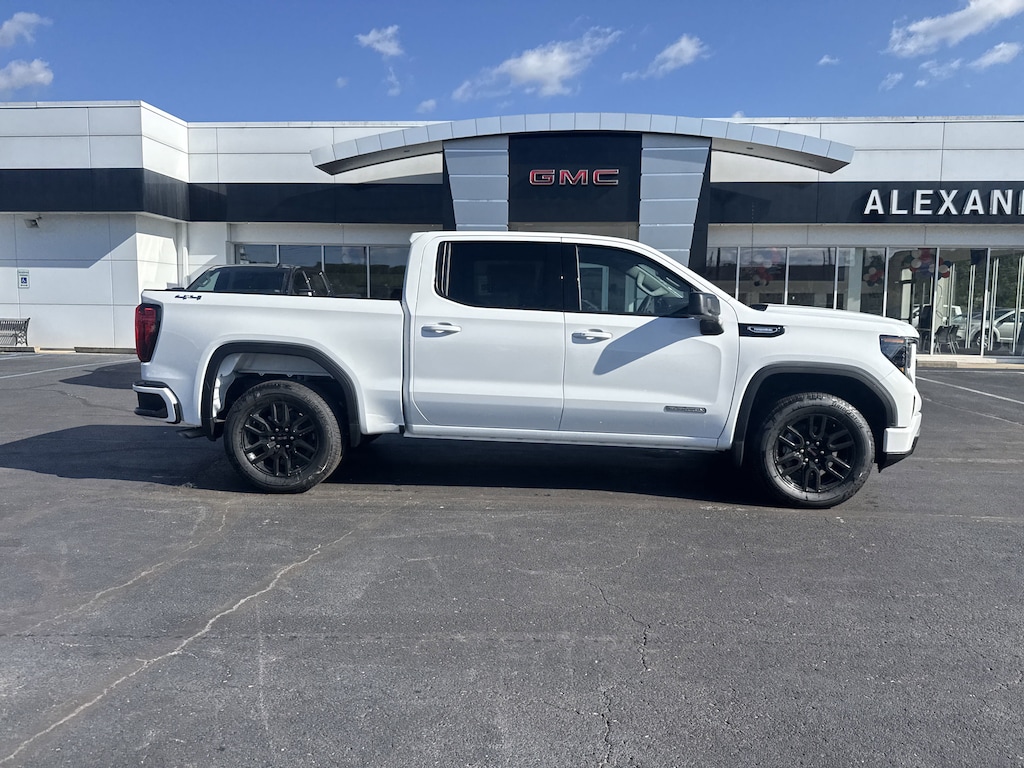 Summit White 2025 GMC Sierra 1500 Elevation 8-Speed Automatic, 4WD, Black Cloth. Cloth Rear Seat w/Storage Package, High Capacity Suspension Package, Preferred Equipment Group 3SB (120-Volt Bed Mounted Power Outlet, 120-Volt Interior Power Outlet, 2 Charge/Data USB Ports, 2 Type-C Charge-Only Rear USB Ports, 6-Speaker Audio System Feature, Auto-Locking Rear Differential, Body Color Header w/Gloss Black Mesh Grille Bars, Color-Keyed Carpeting Floor Covering, Deep-Tinted Glass, Electric Rear-Window Defogger, Front Frame-Mounted Black Recovery Hooks, Front Rubberized-Vinyl Floor Mats, HD Rear Vision Camera, Integrated Trailer Brake Controller, Keyless Open & Start, LED Cargo Area Lighting, Manual Tilt-Wheel & Telescoping Steering Column, OnStar Services Capable, Power Door Locks, Power Front Windows w/Driver Express Up/Down, Power Front Windows w/Passenger Express Down, Power Rear Windows w/Express Down, Push Button Start, Rear Rubberized-Vinyl Floor Mats, Remote Vehicle Starter System, SiriusXM w/360L Trial Subscription, Steering Wheel Audio Controls, Theft Deterrent System (Unauthorized Entry), and Wi-Fi Hotspot Capable), Trailering Package (Hitch Guidance), 8-Speed Automatic, 4WD, Black Cloth, 10-Way Power Driver Seat Adjuster w/Lumbar, 220 Amp Alternator, 4-Way Manual Passenger Seat Adjuster, 4-Wheel Disc Brakes, 6 Speakers, ABS brakes, Air Conditioning, Alloy wheels, AM/FM radio: SiriusXM with 360L, Apple CarPlay/Android Auto, Auto High-beam Headlights, Automatic Emergency Braking, Automatic temperature control, Brake assist, Buckle to Drive, Bumpers: body-color, Cloth Seat Trim, Compass, Delay-off headlights, Driver door bin, Driver vanity mirror, Dual front impact airbags, Dual front side impact airbags, Electronic Stability Control, Emergency communication system: OnStar, Following Distance Indicator, Forward Collision Alert, Front 40/20/40 Split-Bench Seat, Front anti-roll bar, Front Center Armrest w/Storage, Front dual zone A/C, Front fog lights, Front Pedestrian Braking, Front reading lights, Front wheel independent suspension, Fully automatic headlights, Genuine wood dashboard insert, Heated door mirrors, Heated Driver & Front Outboard Passenger Seating, Heated front seats, Heated steering wheel, Illuminated entry, IntelliBeam Automatic High Beam On/Off, Lane Keep Assist w/Lane Departure Warning, Low tire pressure warning, Navigation System, Occupant sensing airbag, Outside temperature display, Overhead airbag, Overhead console, Panic alarm, Passenger door bin, Passenger vanity mirror, Power door mirrors, Power driver seat, Power steering, Power windows, Radio data system, Radio: Premium GMC Infotainment Audio System, Rear reading lights, Rear seat center armrest, Rear step bumper, Rear window defroster, Remote keyless entry, Security system, Speed control, Speed-sensing steering, Split folding rear seat, Steering wheel mounted audio controls, Tachometer, Telescoping steering wheel, Tilt steering wheel, Traction control, Trip computer, Variably intermittent wipers, Voltmeter, Wheels: 20 x 9 High Gloss Black Painted Aluminum, and Wireless Apple CarPlay/Wireless Android Auto.