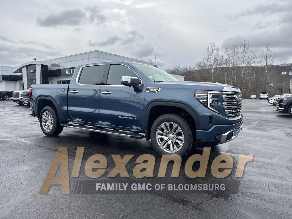 Downpour Metallic 2026 GMC Sierra 1500 Denali 10-Speed Automatic, 4WD, Black Leather. Preferred Equipment Group 5SA (120-Volt Bed Mounted Power Outlet, 120-Volt Interior Power Outlet, 170 Amp Alternator, 2 Charge/Data USB Ports Inside Center Console, 2 Type-C Charge-Only Rear USB Ports, 2 USB Ports, Auto-Locking Rear Differential, Auxiliary External Transmission Oil Cooler, Bed View Camera, Chrome Header with Signature Denali Chrome Grille, Chrome Recovery Hooks, Chrome Wheel to Wheel Assist Steps, Color-Keyed Carpeting Floor Covering, Deep-Tinted Glass, Denali Premium Suspension with Adaptive Ride Control, Electric Rear-Window Defogger, Floor-Mounted Center Console, Front Rain-Sensing Wipers, HD Surround Vision, Heated 2nd Row Outboard Seats, Heated Driver and Front Outboard Passenger Seating, Heavy-Duty Air Filter, Hill Descent Control, Hitch View, in-Vehicle Trailering System App, Integrated Trailer Brake Controller, Keyless Open and Start, LED Cargo Area Lighting, OnStar Services Capable, Perimeter Lighting, Power Door Locks, Power Front Passenger Windows with Express Up/Down, Power Front Windows with Driver Express Up/Down, Power Rake and Telescoping Steering Column, Power Rear Windows with Express Down, Power Sliding Rear Window with Rear Defogger, Premium Bose 7-Speaker Sound System, Push Button Start, Rear Cross Traffic Braking, Rear Pedestrian Detection, Rear Wheelhouse Liners, Remote Vehicle Starter System, SiriusXM with 360L Trial Subscription, Spray-on Pickup Bedliner with GMC Logo, Steering Wheel Audio Controls, Theft Deterrent System (unauthorized Entry), Trailer Camera Provisions, Trailer Side Blind Zone Alert, Ultrasonic Front and Rear Park Assist, Universal Home Remote, Ventilated Driver and Front Passenger Seats, Wheels: 20 x 9 Multi-Dimensional Polished Aluminum, Wi-Fi Hotspot Capable, and Wireless Charging), Trailering Package (Hitch Guidance), 10-Speed Automatic, 4WD, Black Leather, 12-Way Power Driver Seat Adjuster with Lumbar, 12-Way Power Passenger Seat Adjuster with Lumbar, 3.23 Rear Axle Ratio, 4-Wheel Disc Brakes, 7 Speakers, ABS brakes, Adaptive suspension, Air Conditioning, Alloy wheels, AM/FM radio: SiriusXM with 360L, Apple CarPlay/Android Auto, Auto High-beam Headlights, Auto-dimming door mirrors, Auto-dimming Rear-View mirror, Automatic temperature control, Brake assist, Buckle to Drive, Bumpers: body-color, Compass, Delay-off headlights, Driver door bin, Driver Memory, Driver vanity mirror, Dual front impact airbags, Dual front side impact airbags, Electronic Stability Control, Emergency communication system: OnStar, Enhanced Automatic Emergency Braking, Following Distance Indicator, Forge Perforated Leather Seat Trim, Forward Collision Alert, Front anti-roll bar, Front Bucket Seats, Front Center Armrest, Front dual zone A/C, Front fog lights, Front Pedestrian Braking, Front reading lights, Front wheel independent suspension, Fully automatic headlights, Garage door transmitter, Genuine wood console insert, Genuine wood dashboard insert, Genuine wood door panel insert, Heated door mirrors, Heated front seats, Heated rear seats, Heated steering wheel, Illuminated entry, IntelliBeam Automatic High Beam on/Off, Lane Keep Assist with Lane Departure Warning, Low tire pressure warning, Memory seat, Navigation System, Occupant sensing airbag, Outside temperature display, Overhead airbag, Overhead console, Panic alarm, Passenger door bin, Passenger vanity mirror, Power door mirrors, Power driver seat, Power passenger seat, Power steering, Power windows, Radio data system, Radio: Premium GMC Infotainment Audio System, Rain sensing wipers, Rear reading lights, Rear seat center armrest, Rear step bumper, Rear window defroster, Remote keyless entry, Safety Alert Seat, Security system, Speed control, Speed-sensing steering, Split folding rear seat, Steering wheel mounted audio controls, Tachometer, Telescoping steering wheel, Tilt steering wheel, Traction control, Trip computer, Variably intermittent