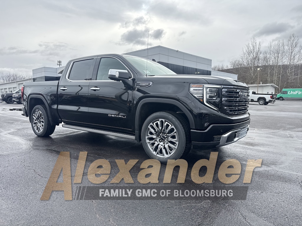 Onyx Black 2026 GMC Sierra 1500 Denali Ultimate 10-Speed Automatic, 4WD, Alpine Umber Leather. Preferred Equipment Group 5SB (120-Volt Bed Mounted Power Outlet, 120-Volt Interior Power Outlet, 2 Charge/Data USB Ports Inside Center Console, 2 Type-C Charge-Only Rear USB Ports, 2 USB Ports, Auto-Locking Rear Differential, Bed View Camera, Bose Premium Series with 12- Speaker System, Chrome Recovery Hooks, Color-Keyed Carpeting Floor Covering, Deep-Tinted Glass, Denali Premium Suspension with Adaptive Ride Control, Electric Rear-Window Defogger, Floor-Mounted Center Console, Front Rain-Sensing Wipers, HD Surround Vision, Heated 2nd Row Outboard Seats, Heated Driver and Front Outboard Passenger Seating, Heavy-Duty Air Filter, High Gloss Black Header with Signature Denali Grille, Hill Descent Control, Hitch View, in-Vehicle Trailering System App, Integrated Trailer Brake Controller, Keyless Open and Start, LED Cargo Area Lighting, Multicolor 15 Diagonal Head-Up Display, MultiPro Tailgate Audio System by Kicker, OnStar Services Capable, Perimeter Lighting, Power Door Locks, Power Front Passenger Windows with Express Up/Down, Power Front Windows with Driver Express Up/Down, Power Rake and Telescoping Steering Column, Power Rear Windows with Express Down, Power Sliding Rear Window with Rear Defogger, Power Sunroof, Push Button Start, Rear Cross Traffic Braking, Rear Pedestrian Detection, Rear Wheelhouse Liners, Remote Vehicle Starter System, SiriusXM with 360L Trial Subscription, Spray-on Pickup Bedliner with GMC Logo, Steering Wheel Audio Controls, Theft Deterrent System (unauthorized Entry), Trailer Camera Provisions, Trailer Side Blind Zone Alert, Trailer Tire Pressure Monitor System, Ultrasonic Front and Rear Park Assist, Universal Home Remote, Ventilated Driver and Front Passenger Seats, Wi-Fi Hotspot Capable, and Wireless Charging), Trailering Package (Hitch Guidance), 10-Speed Automatic, 4WD, Alpine Umber Leather, 12 Speakers, 16-Way Power Driver Seat Adjuster with Lumbar, 16-Way Power Passenger Seat Adjuster with Lumbar, 170 Amp Alternator, 3.23 Rear Axle Ratio, 4-Wheel Disc Brakes, ABS brakes, Adaptive suspension, Air Conditioning, Alloy wheels, AM/FM radio: SiriusXM with 360L, Apple CarPlay/Android Auto, Auto High-beam Headlights, Auto-dimming door mirrors, Auto-dimming Rear-View mirror, Automatic temperature control, Brake assist, Buckle to Drive, Bumpers: body-color, Compass, Delay-off headlights, Driver door bin, Driver Memory, Driver vanity mirror, Dual Active Exhaust, Dual front impact airbags, Dual front side impact airbags, Electronic Stability Control, Emergency communication system: OnStar, Enhanced Automatic Emergency Braking, Following Distance Indicator, Forward Collision Alert, Front anti-roll bar, Front Bucket Seats, Front Center Armrest, Front dual zone A/C, Front fog lights, Front Pedestrian Braking, Front reading lights, Front wheel independent suspension, Full Grain Leather Seat Trim, Fully automatic headlights, Garage door transmitter, Genuine wood console insert, Genuine wood dashboard insert, Genuine wood door panel insert, Heads-Up Display, Heated door mirrors, Heated front seats, Heated rear seats, Heated steering wheel, Illuminated entry, IntelliBeam Automatic High Beam on/Off, Leather steering wheel, Low tire pressure warning, Memory seat, Navigation System, Occupant sensing airbag, Outside temperature display, Overhead airbag, Overhead console, Panic alarm, Passenger door bin, Passenger vanity mirror, Power door mirrors, Power driver seat, Power moonroof, Power passenger seat, Power steering, Power windows, Radio data system, Radio: Premium GMC Infotainment Audio System, Rain sensing wipers, Rear reading lights, Rear seat center armrest, Rear step bumper, Rear window defroster, Remote keyless entry, Safety Alert Seat, Security system, Speed control, Speed-sensing steering, Split folding rear seat, Steering wheel mounted audio controls, Super Cruise, Tachometer, Telescoping steering wheel, Tilt