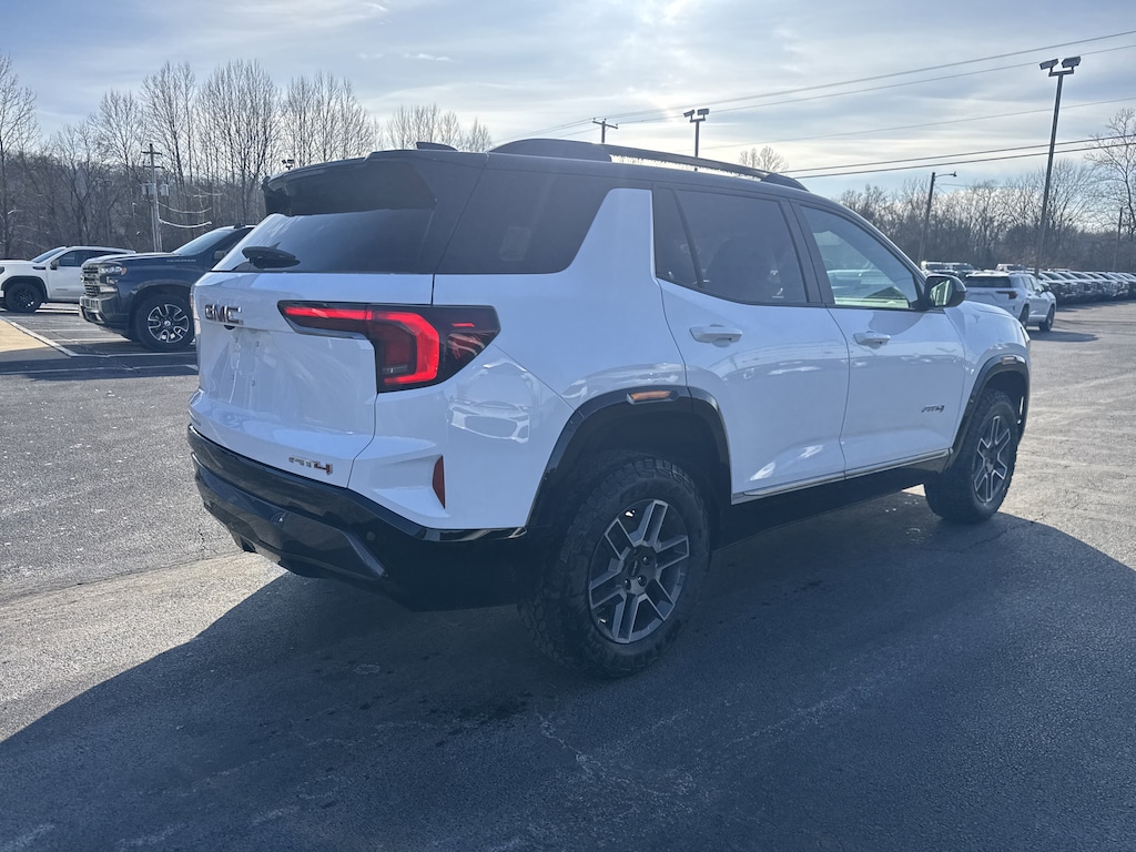 Summit White 2026 GMC Terrain AT4 AWD. AWD, 2-Way Power Driver Lumbar Seat Adjuster, 3.47 Final Drive Axle Ratio, 4-Wheel Disc Brakes, 6 Speakers, 6-Speaker Audio System Feature, 8-Way Power Driver Seat Adjuster, ABS brakes, Air Conditioning, Alloy wheels, AM/FM radio: SiriusXM, Auto High-beam Headlights, Automatic temperature control, Brake assist, Bumpers: body-color, Cloth/Core Tec Seat Trim, Compass, Delay-off headlights, Driver and Front Passenger Heated Seats, Driver door bin, Driver vanity mirror, Dual front impact airbags, Dual front side impact airbags, Electronic Stability Control, Emergency communication system: OnStar and GMC connected services capable, Four wheel independent suspension, Front anti-roll bar, Front Bucket Seats, Front Center Armrest, Front dual zone A/C, Front fog lights, Front Passenger 4-Way Manual Seat Adjuster, Front reading lights, Fully automatic headlights, Garage door transmitter, Heated door mirrors, Heated front seats, Heated steering wheel, Illuminated entry, Low tire pressure warning, Navigation System, Occupant sensing airbag, Outside temperature display, Overhead airbag, Overhead console, Panic alarm, Passenger door bin, Passenger vanity mirror, Power door mirrors, Power driver seat, Power Liftgate, Power steering, Power windows, Radio data system, Radio: Premium GMC Infotainment System, Rain sensing wipers, Rear air conditioning, Rear anti-roll bar, Rear seat center armrest, Rear window defroster, Rear window wiper, Remote keyless entry, Security system, SiriusXM with 360L Trial Subscription, Speed control, Speed-sensing steering, Split folding rear seat, Spoiler, Sport steering wheel, Steering wheel mounted audio controls, Tachometer, Telescoping steering wheel, Tilt steering wheel, Traction control, Trip computer, Variably intermittent wipers, Wheels: 17 Dark Machined Aluminum, and Wireless Apple CarPlay/Wireless Android Auto.24/26 City/Highway MPG