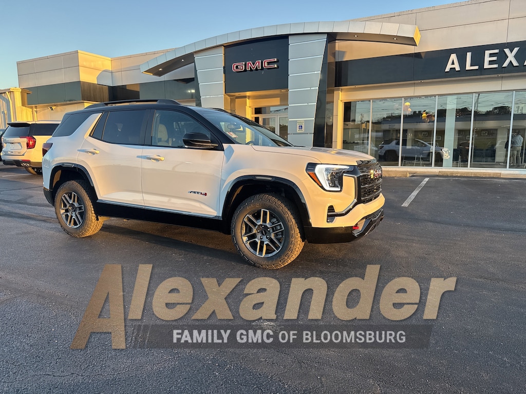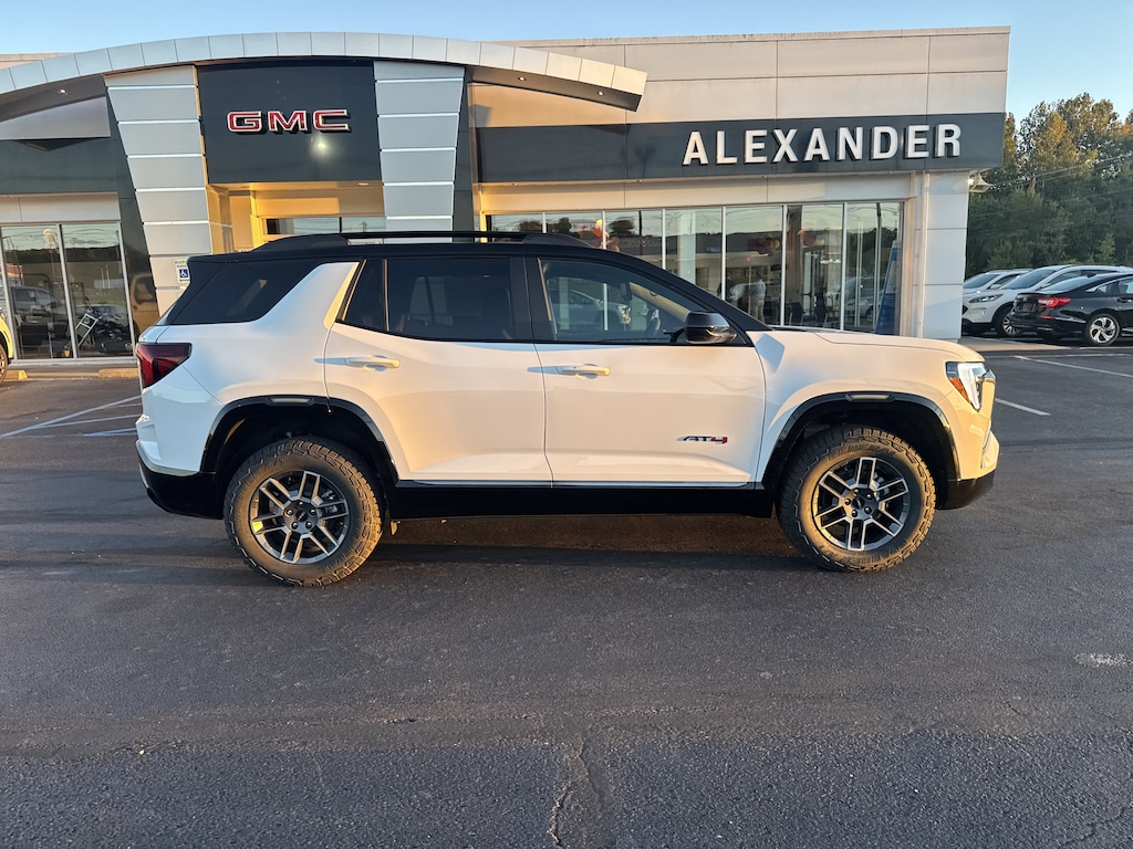 Summit White 2026 GMC Terrain AT4 AWD. Floor Liner Package (LPO) (All-Weather Cargo Mat (LPO), Front All-Weather Floor Liners (LPO), and Second Row All-Weather Mat (LPO)), Preferred Equipment Group 4SB, AWD, 2-Way Power Driver Lumbar Seat Adjuster, 3.47 Final Drive Axle Ratio, 4-Wheel Disc Brakes, 6 Speakers, 6-Speaker Audio System Feature, 8-Way Power Driver Seat Adjuster, ABS brakes, Air Conditioning, Alloy wheels, AM/FM radio: SiriusXM, Auto High-beam Headlights, Automatic temperature control, Brake assist, Bumpers: body-color, Cloth/Core Tec Seat Trim, Compass, Delay-off headlights, Driver & Front Passenger Heated Seats, Driver door bin, Driver vanity mirror, Dual front impact airbags, Dual front side impact airbags, Ebony Twilight Metallic Roof, Ebony Twilight Mirror Caps, Electronic Stability Control, Emergency communication system: OnStar and GMC connected services capable, Four wheel independent suspension, Front anti-roll bar, Front Bucket Seats, Front Center Armrest, Front dual zone A/C, Front fog lights, Front Passenger 4-Way Manual Seat Adjuster, Front reading lights, Fully automatic headlights, Garage door transmitter, Heated door mirrors, Heated front seats, Heated steering wheel, Illuminated entry, Low tire pressure warning, Navigation System, Occupant sensing airbag, Outside temperature display, Overhead airbag, Overhead console, Panic alarm, Passenger door bin, Passenger vanity mirror, Power door mirrors, Power driver seat, Power Liftgate, Power steering, Power windows, Radio data system, Radio: Premium GMC Infotainment System, Rain sensing wipers, Rear air conditioning, Rear anti-roll bar, Rear seat center armrest, Rear window defroster, Rear window wiper, Remote keyless entry, Security system, SiriusXM w/360L Trial Subscription, Speed control, Speed-sensing steering, Split folding rear seat, Spoiler, Sport steering wheel, Steering wheel mounted audio controls, Tachometer, Telescoping steering wheel, Tilt steering wheel, Traction control, Trip computer, Variably intermittent wipers, Wheels: 17 Dark Machined Aluminum, and Wireless Apple CarPlay/Wireless Android Auto.24/26 City/Highway MPG