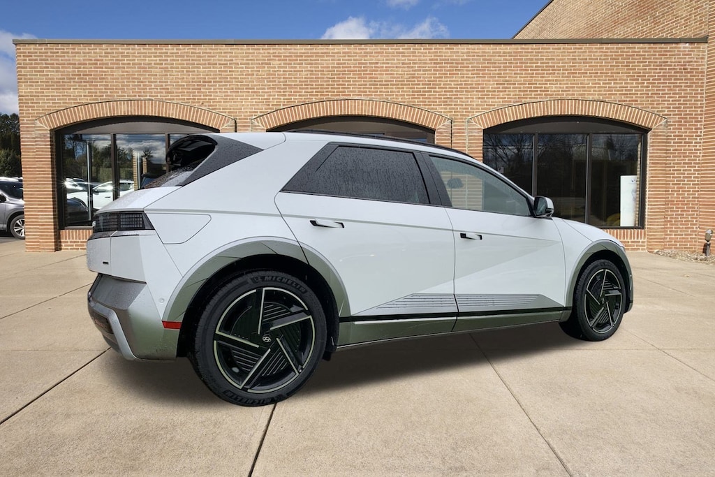 Own our 2025 Hyundai IONIQ 5 Limited AWD in Atlas White that looks fantastic and drives that way, too! Powered by 2 Electric Motors supplying 320hp to a Single Speed Automatic transmission for impressive quickness. This All Wheel Drive SUV can also stretch its legs with a 77.4kWh battery pack and an all-electric range of nearly 260 miles. The striking design turns heads with a technical appearance enhanced by a panoramic Vision sunroof, premium LED lighting, a hands-free liftgate, black body cladding, flush door handles, upgraded side sills, 20-inch wheels, and heated power-folding mirrors.