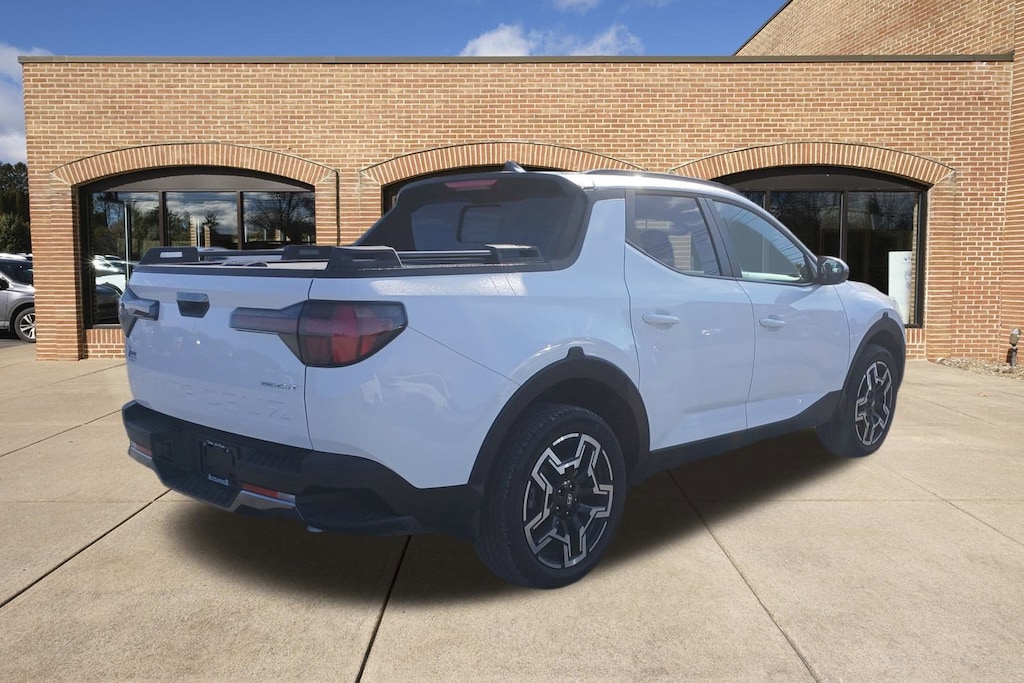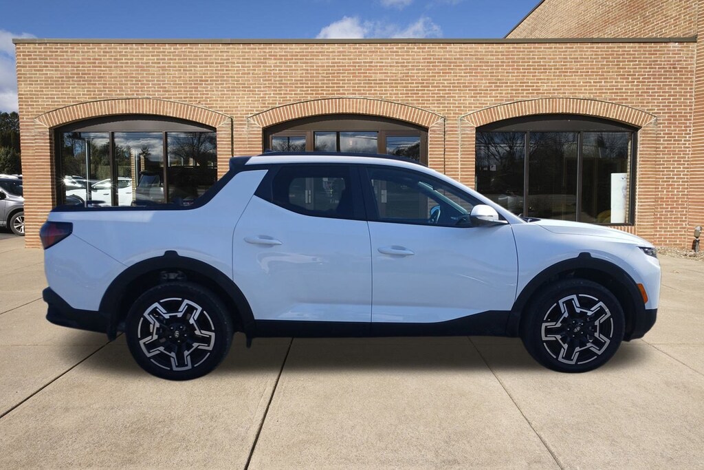 Our head turning 2025 Hyundai Santa Cruz Limited Crew Cab AWD is bold and adventurous in Atlas White! Motivated by a TurboCharged 2.5 Liter 4 Cylinder offering 281hp to a paddle-shifted 8 Speed Dual-clutch Automatic transmission for sporty capability. This All Wheel Drive truck also returns nearly 27mpg on the highway, and it's just the right size for running to the local hardware store. A high-visibility head-turner, our Santa Cruz is expressive and exciting with a power sunroof, 20-inch alloy wheels, a built-in tonneau cover, LED lighting, roof rails, a composite bed, and a remote-release tailgate.