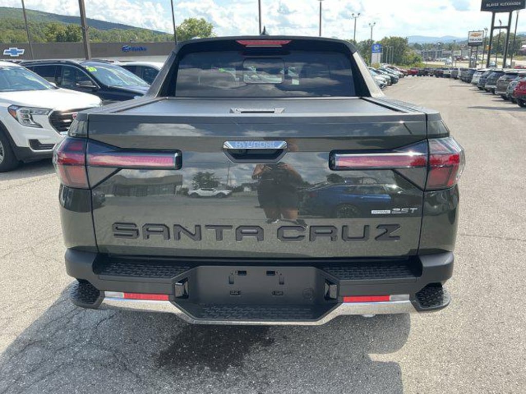 Buy our 2025 Hyundai Santa Cruz Limited Crew Cab AWD that stands out in Rockwood Green! Powered by a TurboCharged 2.5 Liter 4 Cylinder generating 281hp to a paddle-shifted 8 Speed Dual-clutch Automatic transmission for quick gear changes that help keep you ahead of the pack. You can also enjoy sporty handling in this All Wheel Drive truck, which achieves nearly 27mpg on the highway with a trail-friendly spirit. Too bold to blend in, our Santa Cruz has 20-inch alloy wheels, a power sunroof, full LED lighting, premium dark chrome accents, roof rails, a built-in tonneau cover, and a sheet-molded composite bed.