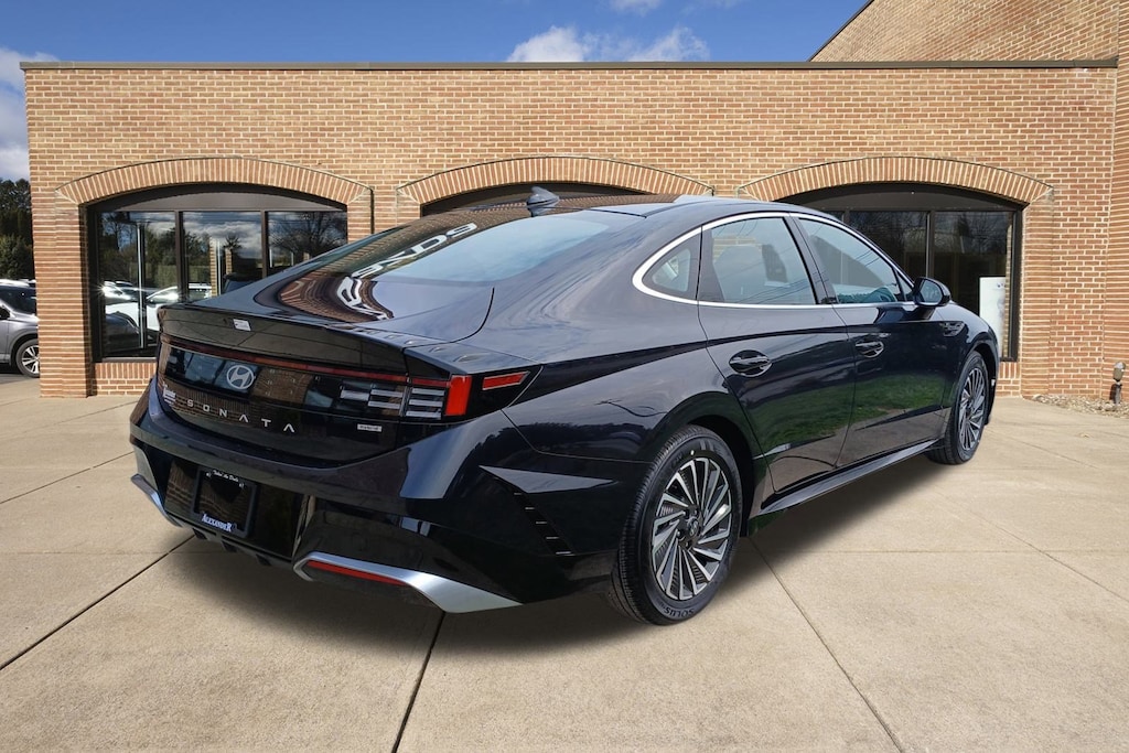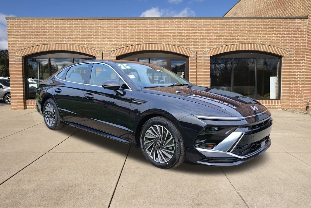 Efficient and energetic, our 2025 Hyundai Sonata Hybrid SEL Sedan rewards you with smart technology and a stylish Carbon Blue design! Motivated by a 2.0 Liter 4 Cylinder and an Electric Motor generating a combined 192hp to a paddle-shifted 6 Speed Automatic transmission for sportier driving. Also impressively maneuverable, this Front Wheel Drive sedan scores nearly 51mpg on the highway with great ratings in the city, too. Crafted with a bold appearance, our Sonata boasts a hands-free trunk, LED lighting, a black mesh grille, gloss-black rocker panels, alloy wheels, dual exhaust outlets, and a rear spoiler.