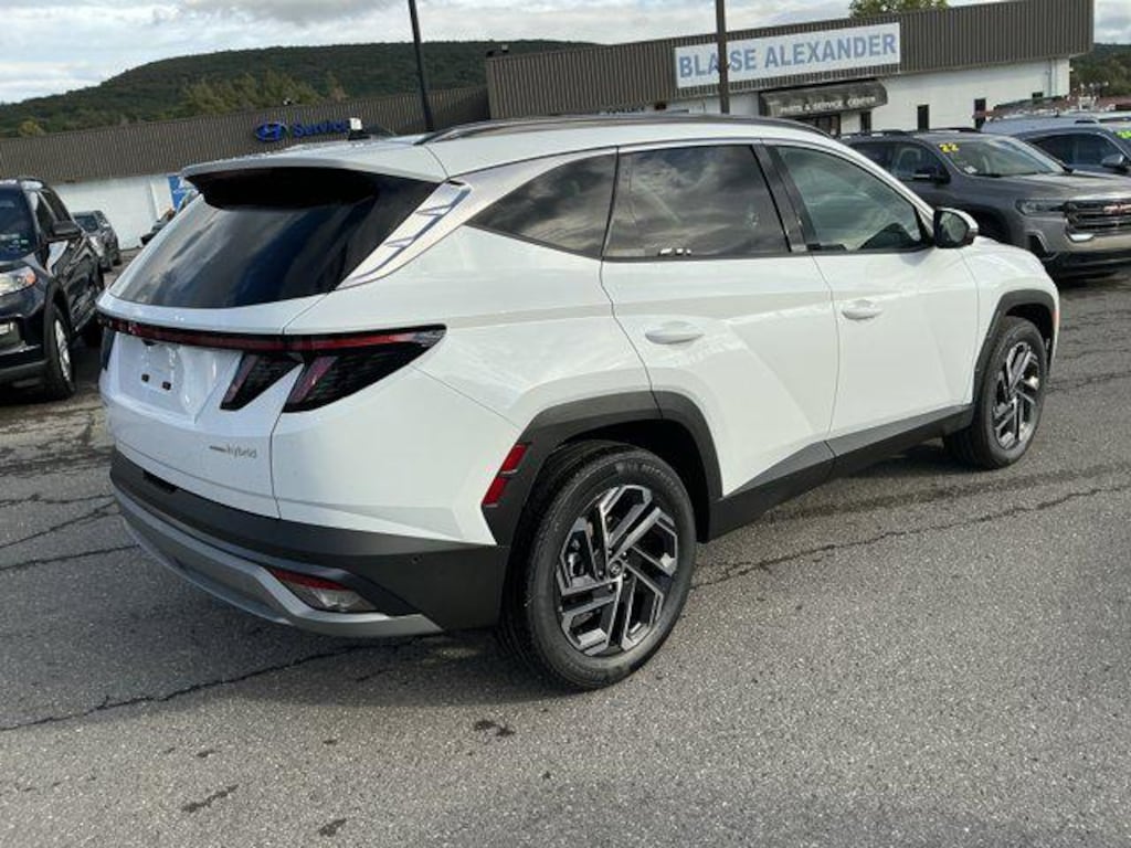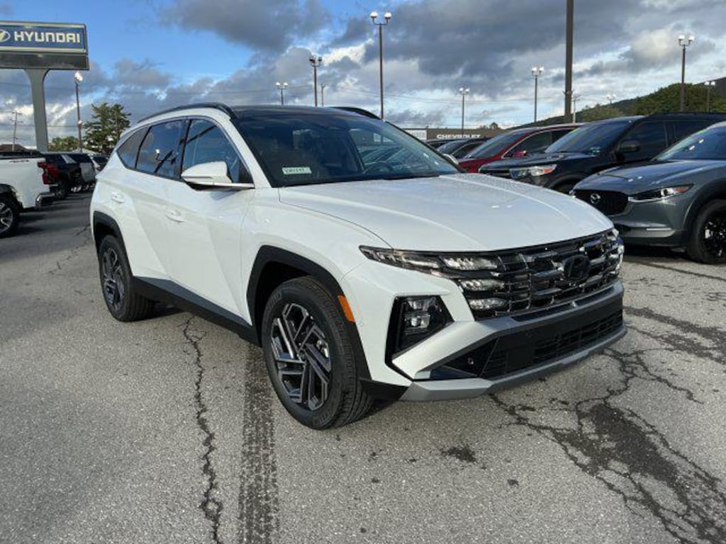 Our family friendly 2025 Hyundai Tucson Hybrid Limited AWD is luxurious and bold in Serenity White Pearl! Motivated by a TurboCharged 1.6 Liter 4 Cylinder and an Electric Motor delivering a combined 226hp to a paddle-shifted 6 Speed Automatic transmission. This All Wheel Drive SUV also features athletic handling to help you control your ride, and it scores nearly 37mpg in the city. Designed to draw attention, our Tucson Hybrid boasts premium LED lighting, a panoramic sunroof, exclusive style cues, a rear spoiler, and a hands-free liftgate.