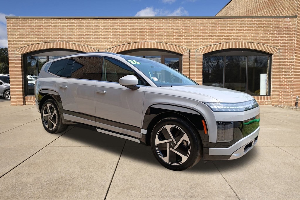 Buy our elegantly advanced 2026 Hyundai IONIQ 9 Performance Limited AWD in Cyber Gray Metallic that delivers electrified luxury, premium innovation, and confident performance. Motivated by Dual Electric Motors supplying a combined 422hp to a Single Speed Automatic transmission for exciting acceleration. Long-distance travel is easy with our All Wheel Drive SUV, which features a 106 kWh battery pack, allowing for nearly 311 miles at nearly 111 MPGe before needing to recharge, plus offers rapid charging. A sleek and detailed design gives our IONIQ 9 another advantage with an expansive sunroof, gloss-black accents, LED lighting, auto-deploying flush door handles, a hands-free trunk, and 21-inch wheels.