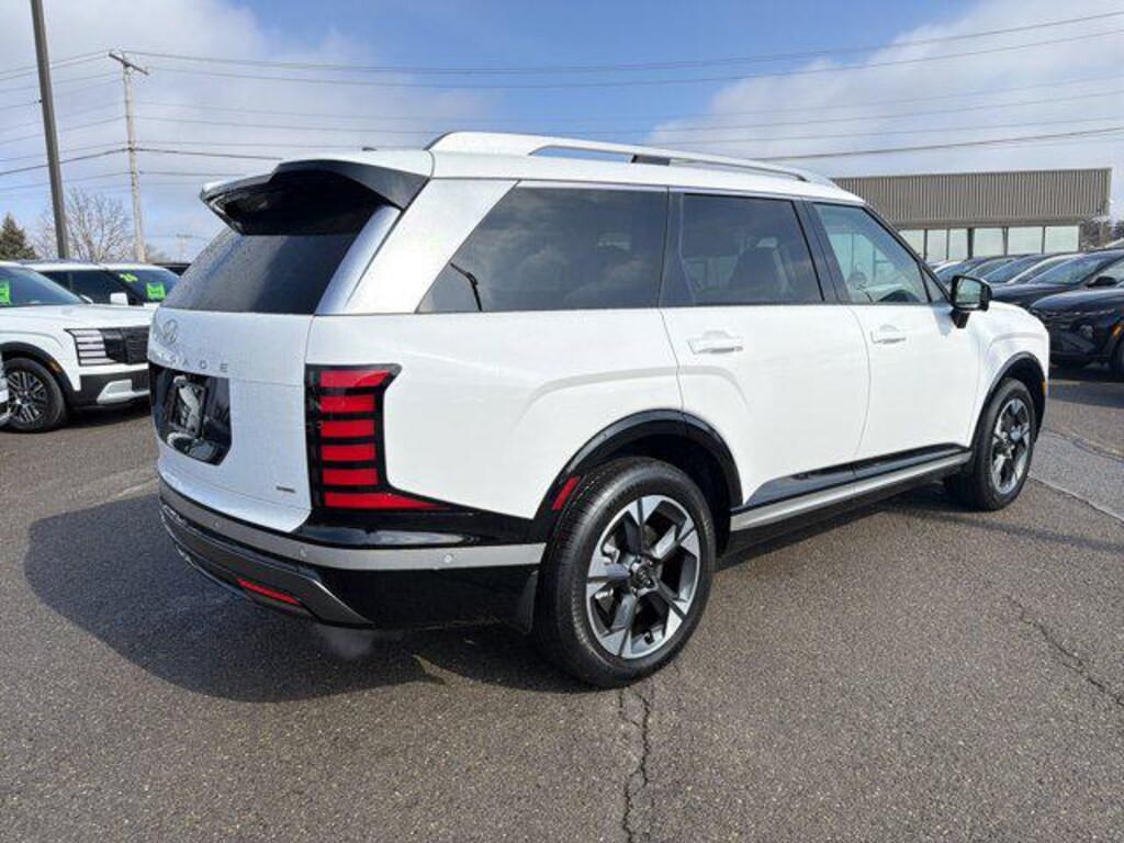 With room for everyone and luxury for all, our 2026 Hyundai Palisade Limited AWD in Creamy White Pearl blends three-row versatility, smooth performance, and modern convenience for everyday adventures. Motivated by a 3.8 Liter V6 supplying 387hp to a paddle-shifted 8 Speed Automatic transmission enhanced by Drive Mode Select. Calm and confident handling helps your crew enjoy the ride as this All Wheel Drive SUV achieves nearly 26mpg on the highway. Dressed to impress, our Palisade stands proud with a dual-pane sunroof, LED lighting, chrome/satin chrome door accents, black/chrome grille, 20-inch alloy wheels, hands-free liftgate, and silver roof rails.
