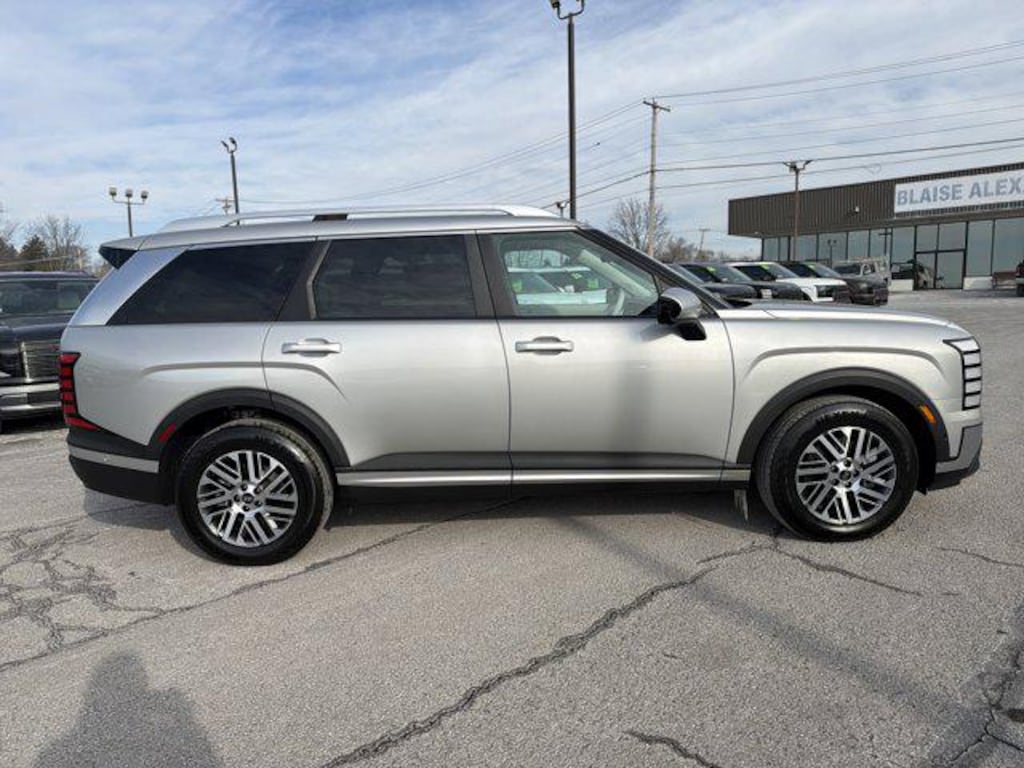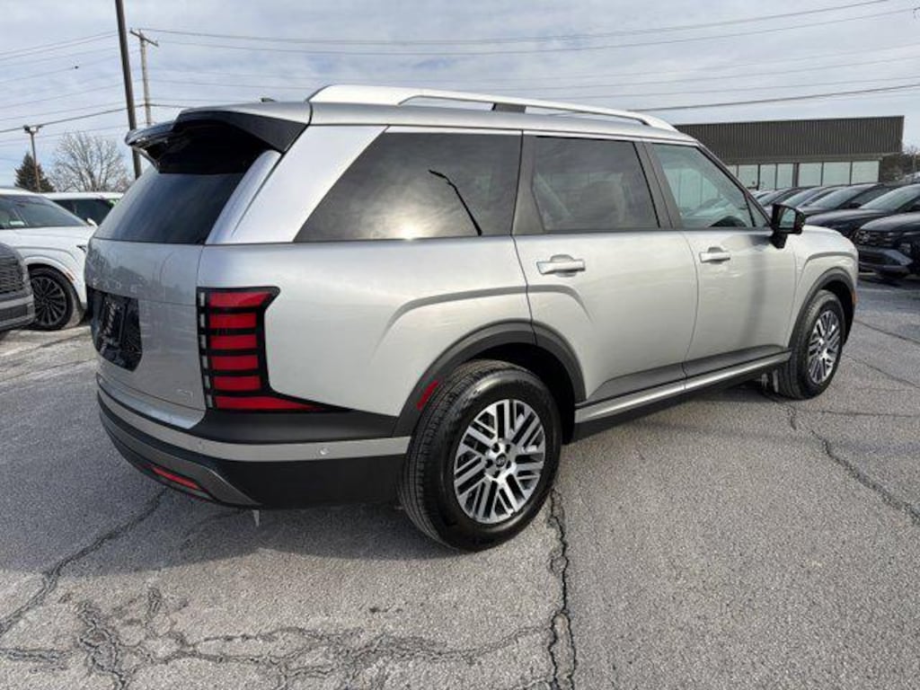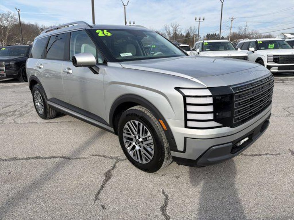 Our family friendly 2026 Hyundai Palisade SEL Premium AWD in Typhoon Silver Metallic combines comfort, convenience, and capability to make daily drives and weekend adventures equally enjoyable. Powered by a robust 3.5 Liter V6 that delivers 287hp through a paddle-shifted 8 Speed Automatic transmission, able to adapt to your drive with selectable performance modes. Confident on any road, this All Wheel Drive SUV returns nearly 26mpg on the highway. Bold design elements stand out with LED lighting, silver roof rails, a two-tone rear bumper, coordinated door garnishes, alloy wheels, a sunroof, and a hands-free smart liftgate for effortless access.