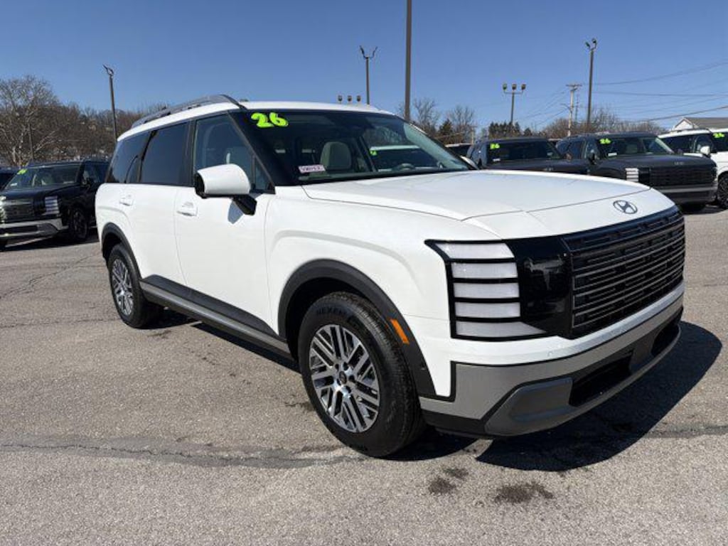 Take comfort and capability to fresh levels with our 2026 Hyundai Palisade SEL Premium AWD in White Pearl. Powered by a robust 3.5 Liter V6 that delivers 287hp through a paddle-shifted 8 Speed Automatic transmission, able to adapt to your drive with selectable performance modes. Confident on any road, this All Wheel Drive SUV returns nearly 26mpg on the highway. Bold design elements stand out with LED lighting, silver roof rails, a two-tone rear bumper, a sunroof, coordinated door garnishes, alloy wheels, and a hands-free smart liftgate for effortless access.