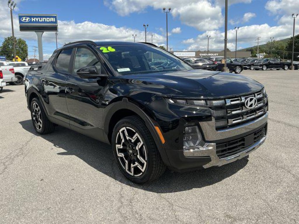 Our 2026 Hyundai Santa Cruz Limited Crew Cab AWD brilliantly blends utility and style in Phantom Black! Motivated by a TurboCharged 2.5 Liter 4 Cylinder offering 281hp to a paddle-shifted 8 Speed Dual-clutch Automatic transmission for sporty capability. This All Wheel Drive truck also returns nearly 27mpg on the highway, and it's just the right size for running to the local hardware store. A high-visibility head-turner, our Santa Cruz is expressive and exciting with a power sunroof, 20-inch alloy wheels, a built-in tonneau cover, LED lighting, roof rails, a composite bed, and a remote-release tailgate.