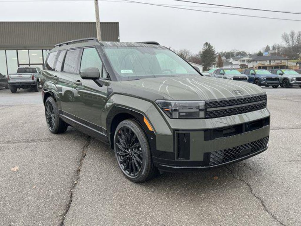 Drive our 2026 Hyundai Santa Fe Calligraphy AWD in Rockwood Green and enjoy panoramic dual displays, premium audio, and advanced driver-assist technology. Powered by a TurboCharged 2.5 Liter 4 Cylinder providing 277hp to an 8 Speed Dual-clutch Automatic transmission with multiple drive modes. This All Wheel Drive SUV also features fearless performance and composed handling, achieving nearly 28mpg on the highway. Standing strong, our Santa Fe shows off LED lighting, a dual-pane sunroof, a hands-free liftgate, 21-inch alloy wheels, roof rails, and heated power-folding mirrors.