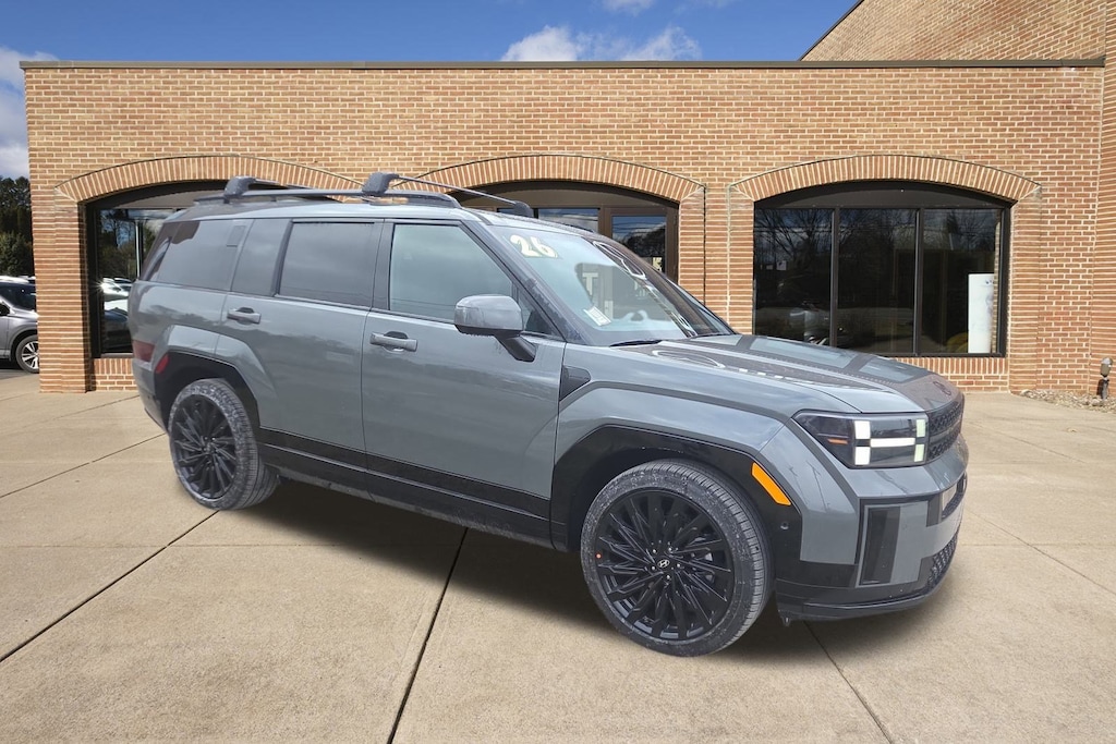 Treat your family to our 2026 Hyundai Santa Fe Calligraphy AWD to enjoy panoramic dual displays, premium audio, and advanced driver-assist technology in a striking Hampton Gray finish. Powered by a TurboCharged 2.5 Liter 4 Cylinder providing 277hp to an 8 Speed Dual-clutch Automatic transmission with multiple drive modes. This All Wheel Drive SUV also features fearless performance and composed handling, achieving nearly 28mpg on the highway. Standing strong, our Santa Fe shows off LED lighting, a dual-pane sunroof, a hands-free liftgate, 21-inch alloy wheels, roof rails, and heated power-folding mirrors.