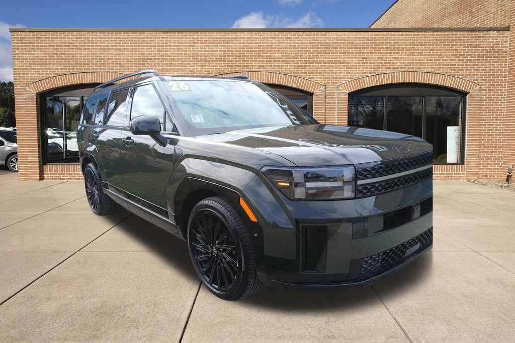 Our 2026 Hyundai Santa Fe Calligraphy offers three rows of premium comfort with a striking Rockwood Green design! Powered by a TurboCharged 2.5 Liter 4 Cylinder providing 277hp to an 8 Speed Dual-clutch Automatic transmission with multiple drive modes. This Front Wheel Drive SUV also features fearless performance and composed handling, achieving nearly 29mpg on the highway. Standing strong, our Santa Fe shows off LED lighting, a dual-pane sunroof, a hands-free liftgate, 21-inch alloy wheels, roof rails, and heated power-folding mirrors.