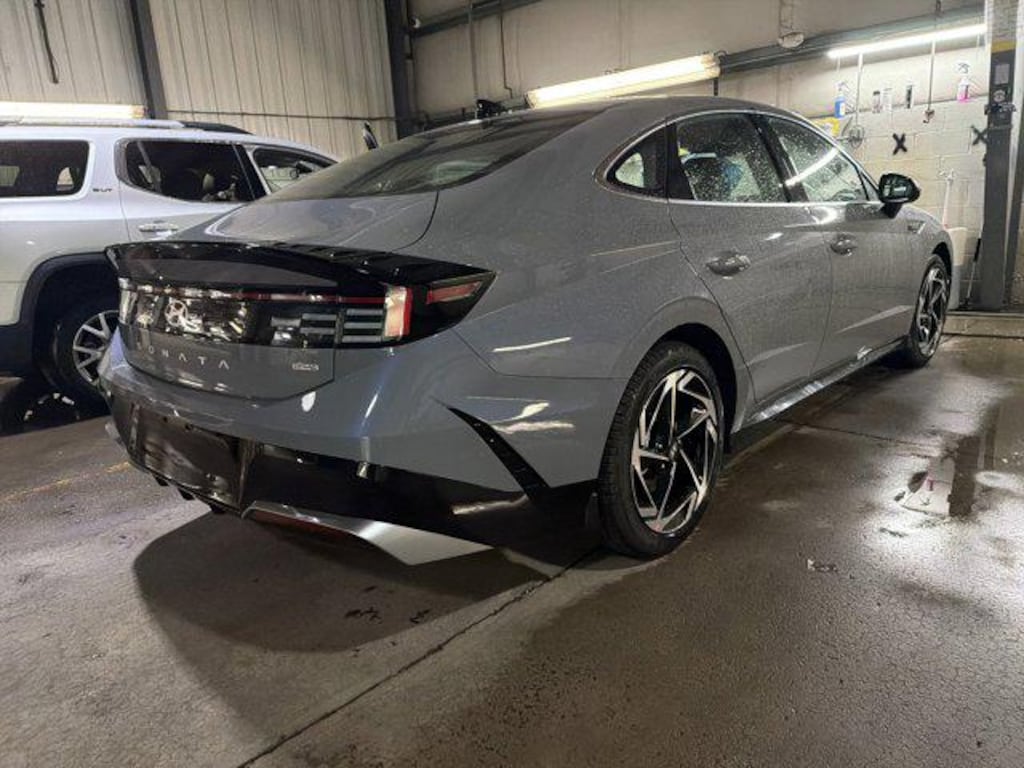 Our athletically inclined 2026 Sonata SEL Sport AWD Sedan is boldly designed in Carbon Blue. Powered by a 2.5 Liter 4 Cylinder delivering 191hp to a paddle-shifted 8 Speed Automatic transmission with Drive Mode Select to help fine-tune performance further. This All Wheel Drive sedan also combines sharp handling with the ability to return nearly 34mpg on the highway. Also sharp-looking, our Sonata makes a striking impression with LED lighting, gloss-black rocker panels, 17-inch alloy wheels, twin exhaust tips, a black mesh grille, a rear spoiler, a swooping profile, and a hands-free trunk.