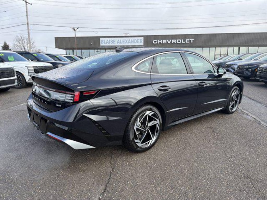 Athletic and composed, our 2026 Sonata SEL Sport AWD Sedan in Carbon Blue delivers precise control and all-weather traction to make driving more engaging. Powered by a 2.5 Liter 4 Cylinder delivering 191hp to a paddle-shifted 8 Speed Automatic transmission with Drive Mode Select to help fine-tune performance further. This All Wheel Drive sedan also combines sharp handling with the ability to return nearly 34mpg on the highway. Also sharp-looking, our Sonata makes a striking impression with LED lighting, gloss-black rocker panels, 17-inch alloy wheels, twin exhaust tips, a black mesh grille, a rear spoiler, a swooping profile, and a hands-free trunk.