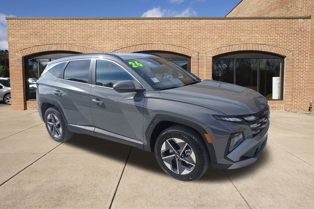 Our 2026 Hyundai Tucson SEL AWD is up for your next adventure in a distinctive Gray finish! Motivated by a 2.5 Liter 4 Cylinder supplying 187hp to an 8 Speed SHIFTRONIC Automatic transmission with a multimode drive system. This All Wheel Drive SUV also scores nearly 30mpg on the highway with capable handling for keeping up with busy days. Bold and modern, our Tucson is crafted for today's drivers with LED lighting, a hands-free liftgate, a rear spoiler, heated power mirrors, roof rails, and alloy wheels.