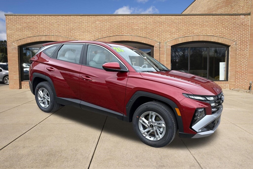 Our 2026 Hyundai Tucson SE AWD in Ultimate Red keeps up with your world through smart connectivity, practical design, and smooth modern style. Powered by a 2.5 Liter 4 Cylinder serving up 187hp matched to an 8 Speed SHIFTRONIC Automatic transmission with Drive Mode Select for tailored performance. A carefully tuned suspension helps keep you comfortably on the move in this All Wheel Drive SUV, which returns nearly 30mpg on the highway. Our Tucson welcomes you with expressive exterior design and details like LED lighting, 17-inch alloy wheels, and a sporty rear spoiler.