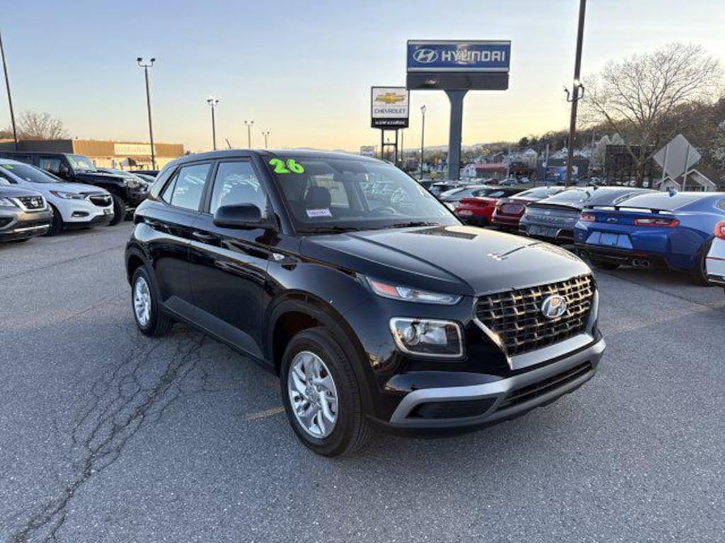 Efficient, comfortable, and practical our 2026 Hyundai Venue SE in Abyss Black is ready for your demanding lifestyle! Motivated by a 1.6 Liter Smartstream 4 Cylinder serving up 121hp paired to a CVT for a smart approach to efficiency. Designed to dash through city traffic with dynamic handling, this Front Wheel Drive SUV achieves nearly 33mpg on the highway. Stylish and practical, our Venue has a bold sport-utility design with a black grille, alloy wheels, heated power mirrors, and automatic headlights.
