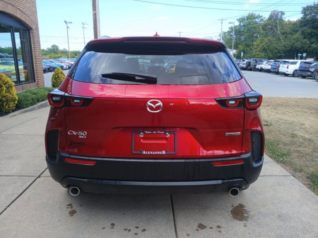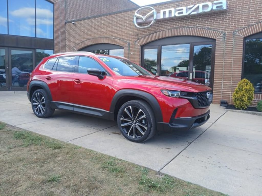 Designed with your life in mind, our 2025 Mazda CX-50 2.5 S Premium Plus AWD levels up for more luxurious driving in Soul Red Crystal Metallic! Motivated by a 2.5 Liter 4 Cylinder providing 187hp to a 6 Speed Automatic transmission with Intelligent Drive Select. It helps keep you feeling closer to the road or trail in this All Wheel Drive SUV, which achieves nearly 31mpg on the highway. Our CX-50's eye-catching exterior greets you with LED lighting, a power liftgate, a power sunroof, alloy wheels, a rear spoiler, and heated power-folding mirrors.