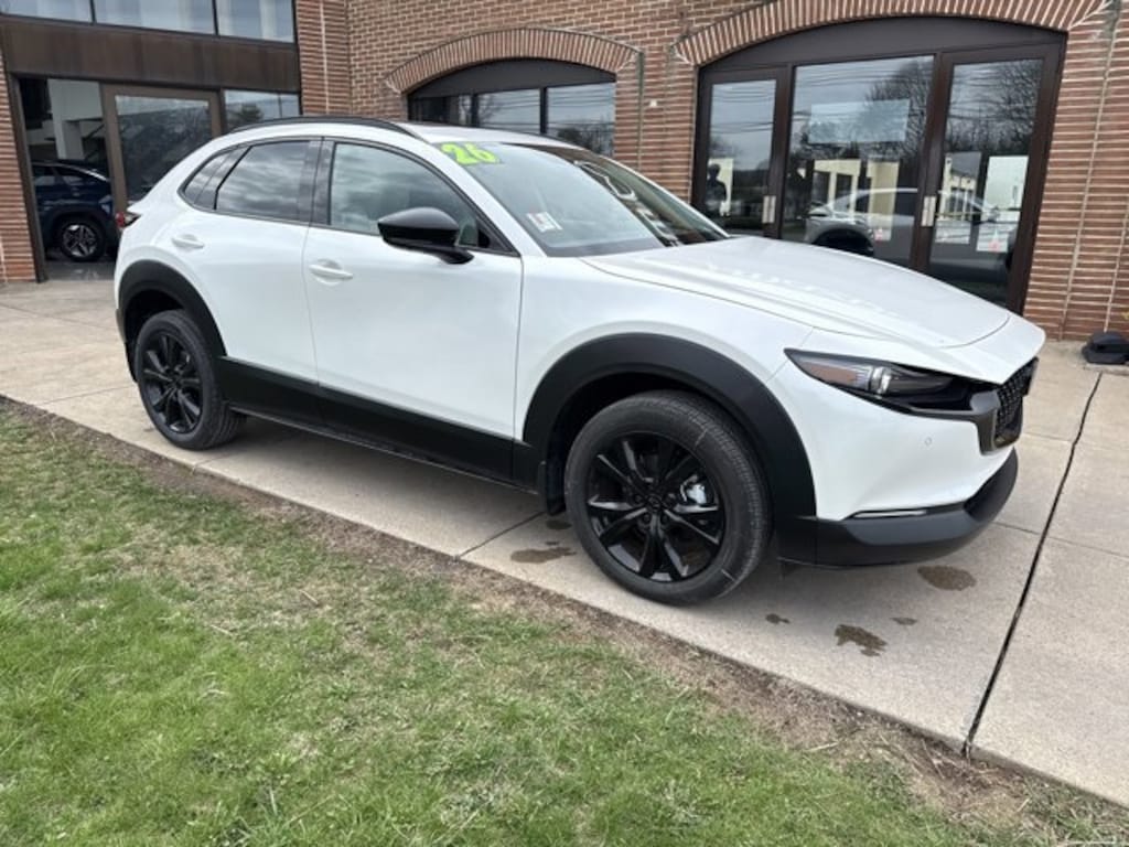 Our 2026 Mazda CX-30 Turbo Premium Plus AWD is a distinctive alternative to ordinary SUVs in Snowflake White Pearl Mica! Powered by a TurboCharged 2.5 Liter 4 Cylinder supplying 250hp to a paddle-shifted 6 Speed Sport Automatic transmission to get up to speed on your next adventure quickly. This All Wheel Drive SUV also returns nearly 30mpg on the highway, and you can head for the trails with Off-road Traction Assist. Enjoy an aura of impressive luxury with our Mazda CX-30's power sunroof, adaptive front LED lighting, a power liftgate, roof rails, multifunction mirrors, and alloy wheels.