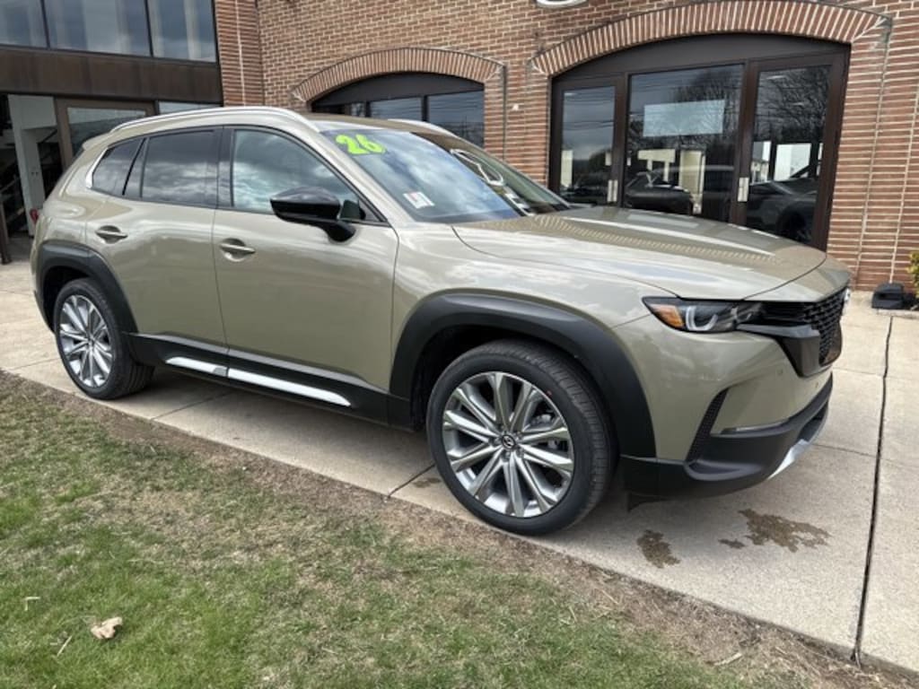 Engineered to do more, our 2026 Mazda CX-50 2.5 Turbo Premium Plus AWD is backed by bold driving benefits in Zircon Sand Metallic! Powered by a TurboCharged 2.5 Liter 4 Cylinder serving up 227hp to a paddle-shifted 6 Speed Automatic transmission for muscular modern capability. Also known for its responsive handling on the pavement or off, this All Wheel Drive SUV is eager to explore and achieves nearly 29mpg on the highway. Our CX-50 is at the center of attention with its power sunroof, adaptive front LED lighting, 20-inch wheels, a power liftgate, dual exhaust outlets, and heated power-folding mirrors.