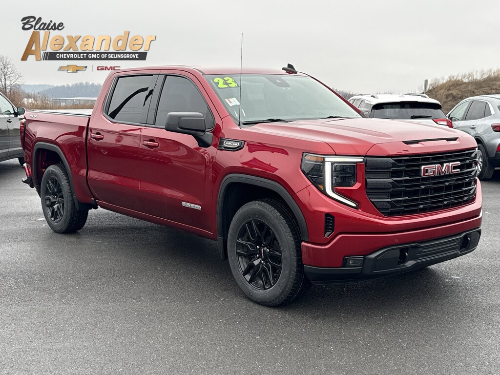 Volcanic Red Tintcoat 2023 GMC Sierra 1500 Elevation 4WD 10-Speed Automatic EcoTec3 5.3L V8 4 WHEEL DRIVE/ALL WHEEL DRIVE, ONE OWNER, FRESH TRADE, SERVICED HERE, FREE LIFETIME STATE INSPECTIONS, ONLY AT BLAISE ALEXANDER CHEVY GMC OF SELINSGROVE, 10-Speed Automatic, 4WD, Black Cloth, 6-Speaker Audio System Feature, Air Conditioning, Push Button Start, Remote keyless entry, Remote Vehicle Starter System, SiriusXM w/360L, Steering wheel mounted audio controls, Wheels: 20" x 9" High Gloss Black Painted Aluminum.