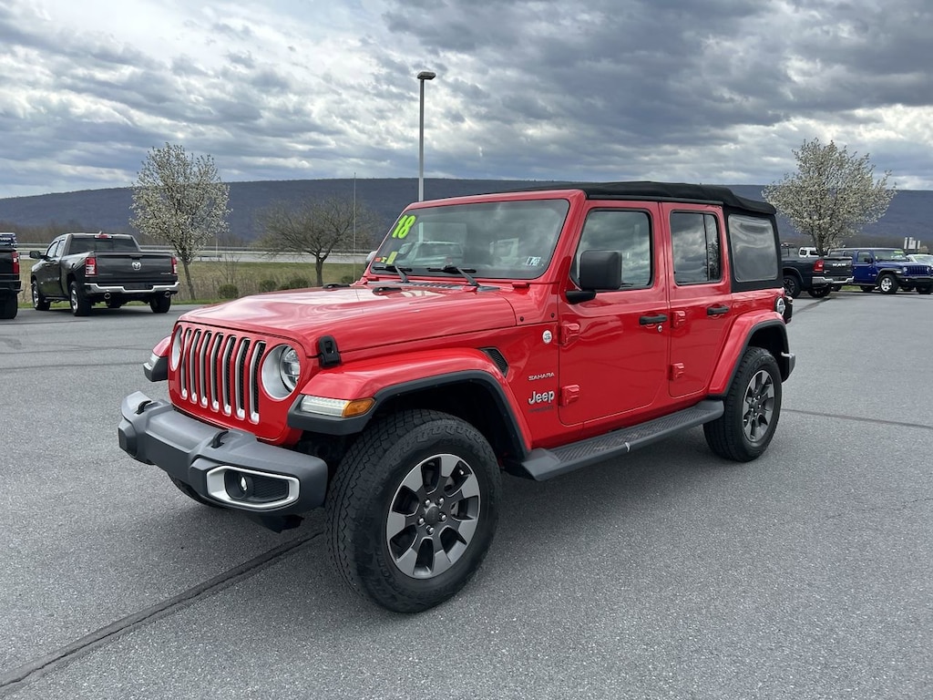Passed Dealer Inspection, Wrangler Unlimited Sahara, 4D Sport Utility, 3.6L V6 24V VVT, 8-Speed Automatic, 4WD, Firecracker Red Clearcoat, Black Leather. Priced below KBB Fair Purchase Price! Firecracker Red Clearcoat 2018 Jeep Wrangler Unlimited Sahara 4WD 8-Speed Automatic 3.6L V6 24V VVT