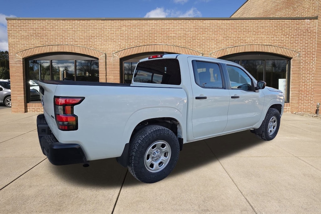 Our 2022 Nissan Frontier S Crew Cab 4X4 moves you with massive capability in Glacier White! Powered by a 3.8 Liter V6 that delivers 310hp connected to 9 Speed Automatic transmission with tow/haul mode to help make pulling easier. This Four Wheel Drive truck also features a rugged Dana rear axle and a two-speed transfer case, plus it scores nearly 22mpg on the highway. Fierce and functional, our Frontier has terrific truck appeal with LED lighting, a front skid plate, front tow hooks, a bold black grille, matching accents, four full doors, and a damped locking tailgate.