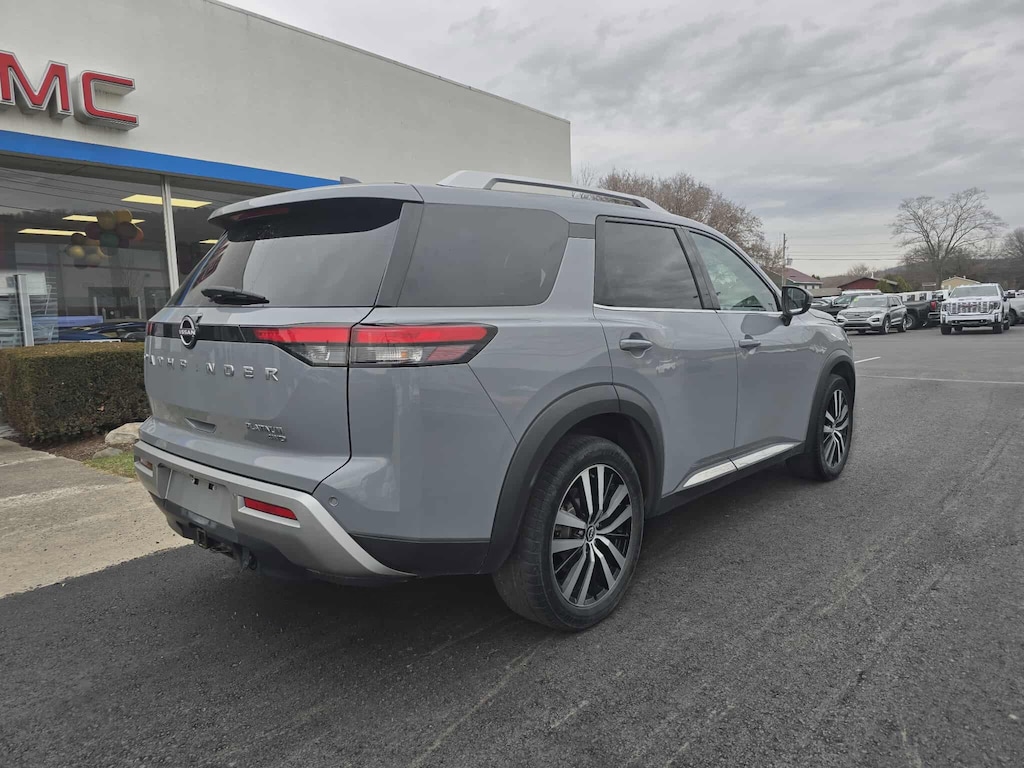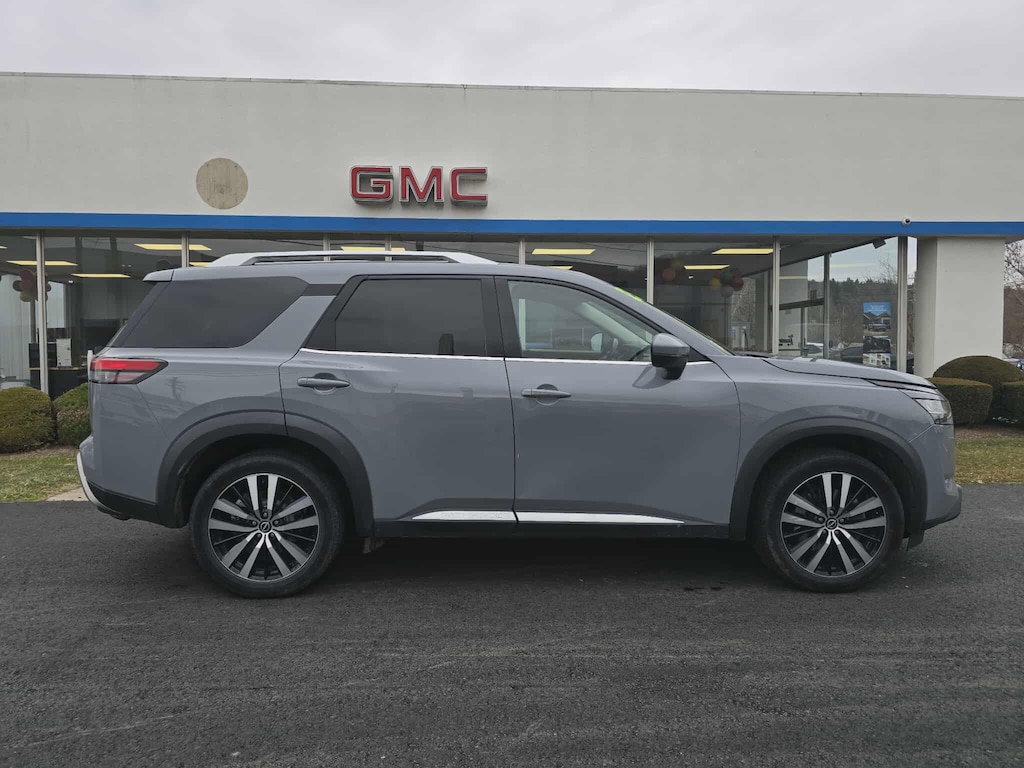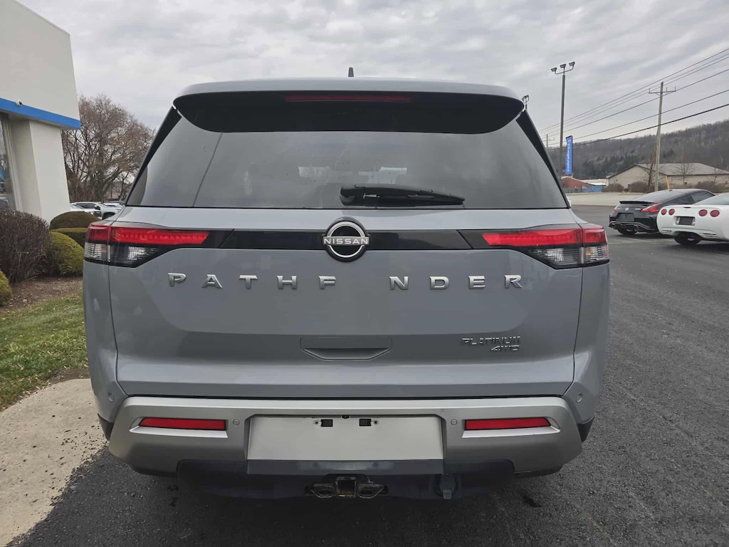 Boulder Gray Pearl 2023 Nissan Pathfinder Platinum 4WD 9-Speed Automatic V6 4WD, 2nd-Row Captain Chairs, 2nd-Row Removable Center Console, Cargo Area Protector, Cargo Net, Cargo Package, First Aid Kit, Navigation system: NissanConnect Navigation, Platinum Captain Chairs Package.