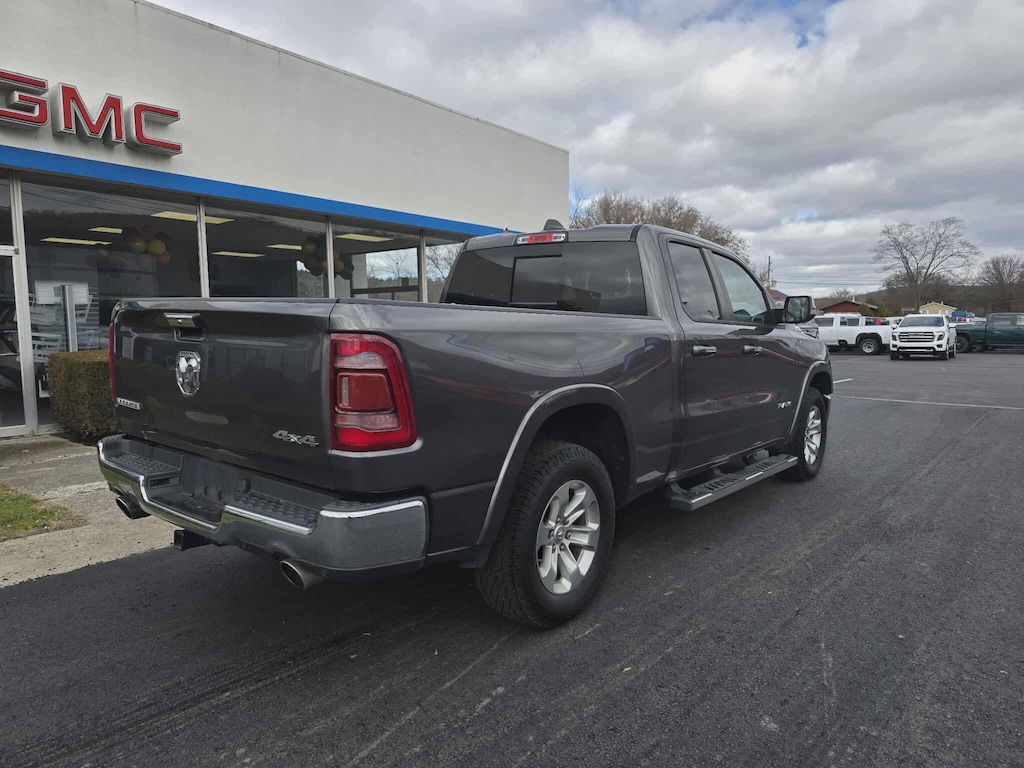 Granite Crystal Metallic Clearcoat 2020 Ram 1500 Laramie 4WD 8-Speed Automatic HEMI 5.7L V8 Multi Displacement VVT 4 Adjustable Cargo Tie-Down Hooks, Auto High Beam Headlamp Control, Bed Utility Group, Blind Spot & Cross Path Detection, Deployable Bed Step, Foam Bottle Insert (Door Trim Panel), Laramie Level 1 Equipment Group, ParkSense Front/Rear Park Assist w/Stop, Pick-Up Box Lighting, Quick Order Package 25H Laramie, Rain Sensitive Windshield Wipers, Remote Tailgate Release, Spray In Bedliner, Tailgate Ajar Warning Lamp.