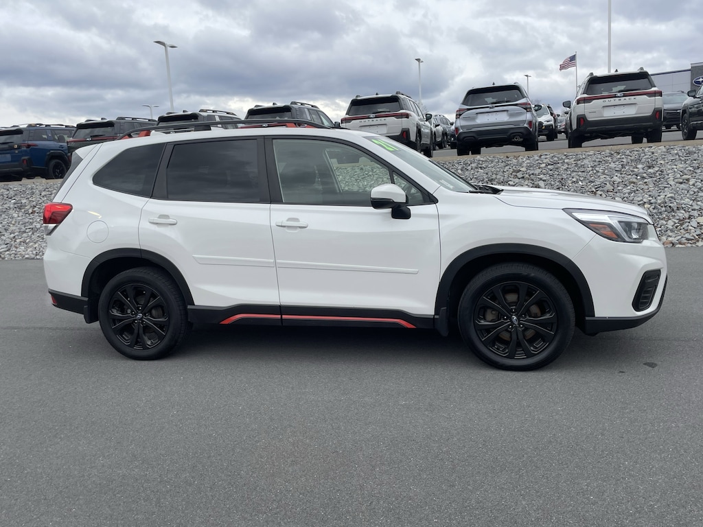 New Price! Crystal White Pearl 2021 Subaru Forester Sport AWD Lineartronic CVT 2.5L 4-Cylinder DOHC 16V VVT Forester Sport, 4D Sport Utility, 2.5L 4-Cylinder DOHC 16V VVT, Lineartronic CVT, AWD, Crystal White Pearl, Gray Cloth, All-Weather Floor Liners, Audio System & Reverse Auto Brake & Power Rr Gate, Auto-Dimming Exterior Mirror w/Approach Lighting, Auto-Dimming Mirror w/Compass & HomeLink, Cargo Net, harman kardon 576W Amp & Speaker System, Popular Package #2, Power Rear Gate w/Automatic Close & Height Memory, Radio: Subaru Starlink 8.0" Multimedia Plus System, Rear Bumper Cover, Reverse Automatic Braking System (RAB).